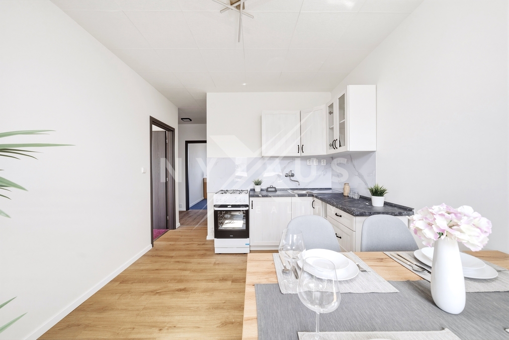 Zrekonstruovaný byt o dispozici 3+1, o ploše 53 m² a zasklené lodžii 6 m² v ulici Veltruská, Praha 9 - Prosek.