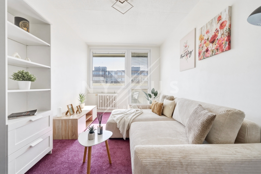 Dispozice bytu je funkční a nabízí dostatek prostoru pro pohodlné bydlení. Obývací pokoj je doplněn zasklenou lodžií, která příjemně rozšiřuje obytný prostor a dá se využít po většinu roku. Součástí bytu je také sklep umístěný přímo naproti bytu, což je detail, který výrazně usnadňuje každodenní fungování. Byt působí čistě a udržovaně a je připravený k okamžitému nastěhování.