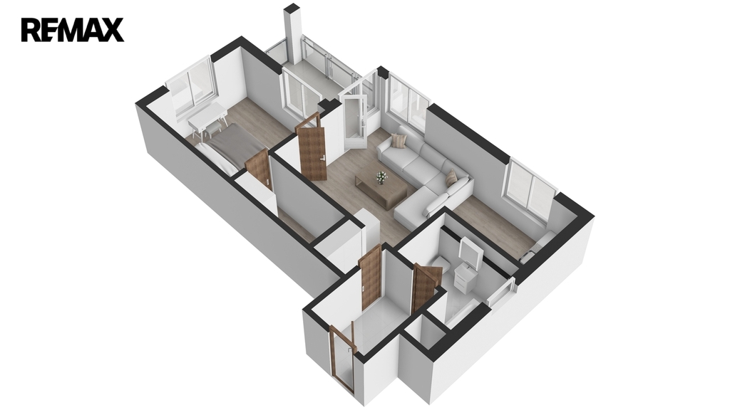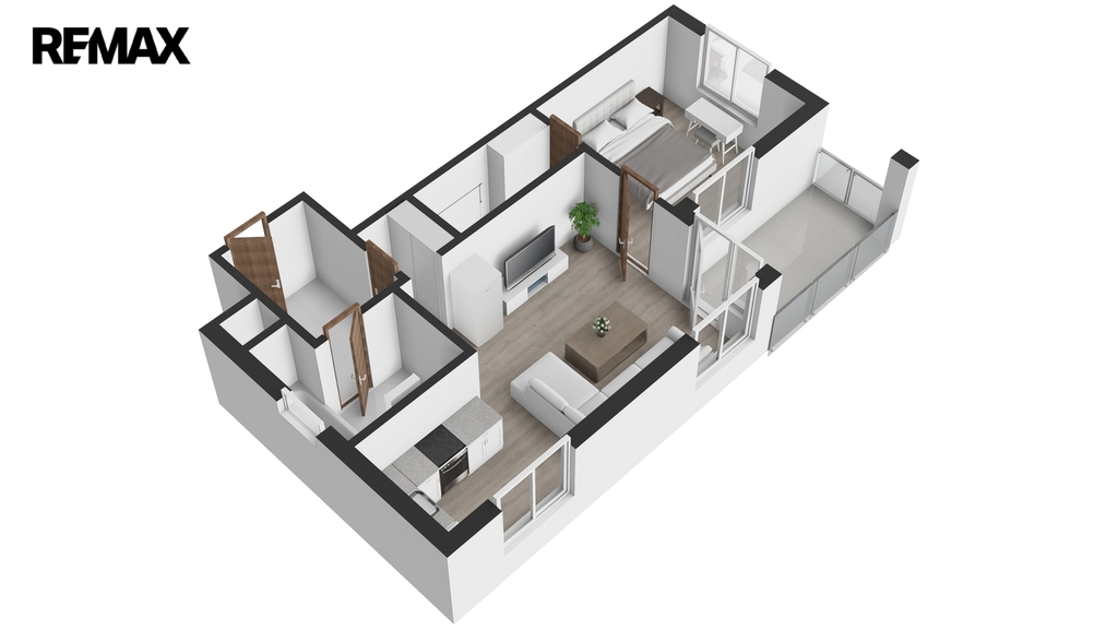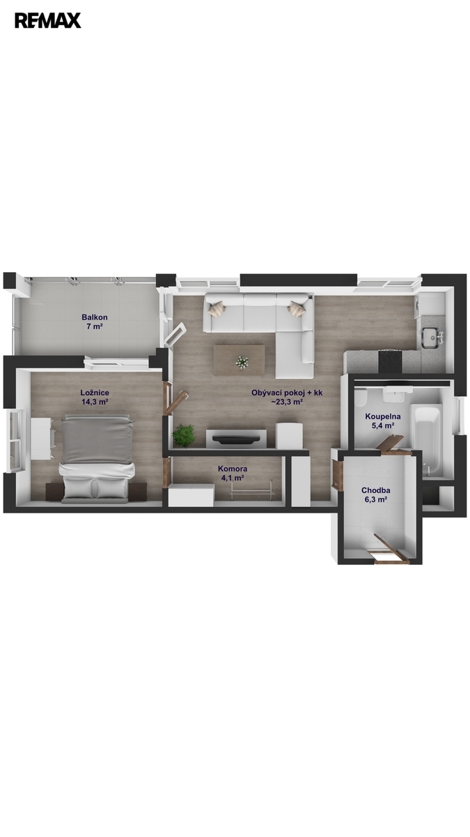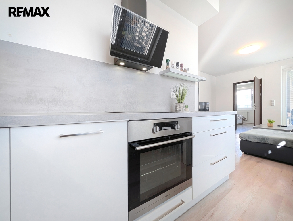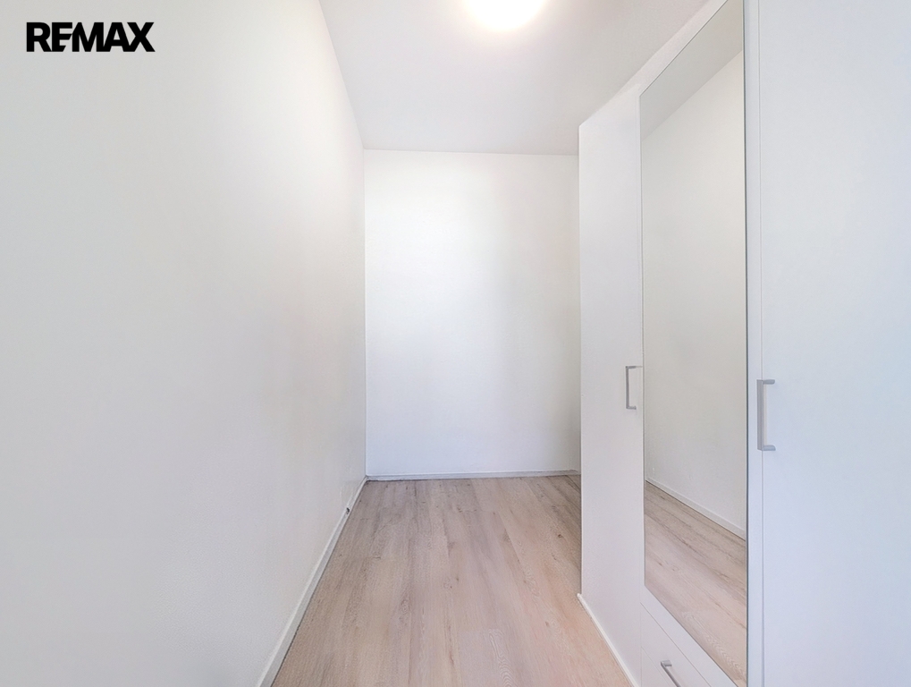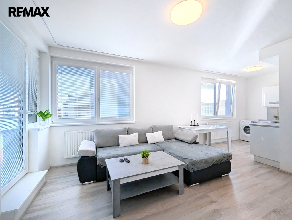 Dispozice je řešena velmi efektivně – obývací pokoj se zařízeným kuchyňským koutem a přímým vstupem na balkón, samostatná ložnice s přístupem do šatny, prostorná chodba a koupelna s vanou a otopným žebříkem. Velkým benefitem jsou úložné prostory řešené na míru, které dávají bytu nadstandardní funkčnost pro každodenní život. Díky orientaci na více světových stran (jih, východ, západ) je byt přirozeně světlý a vzdušný po celý den.