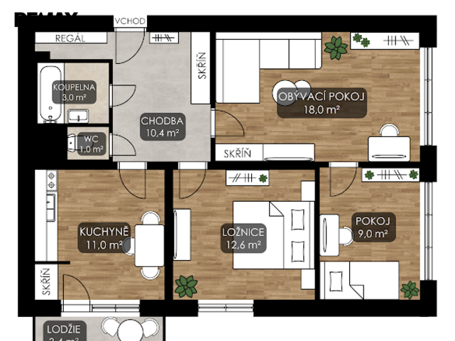 Byt lze kompletně zrekonstruovat dle moderních vizualizací, které jsou součástí nabídky.
