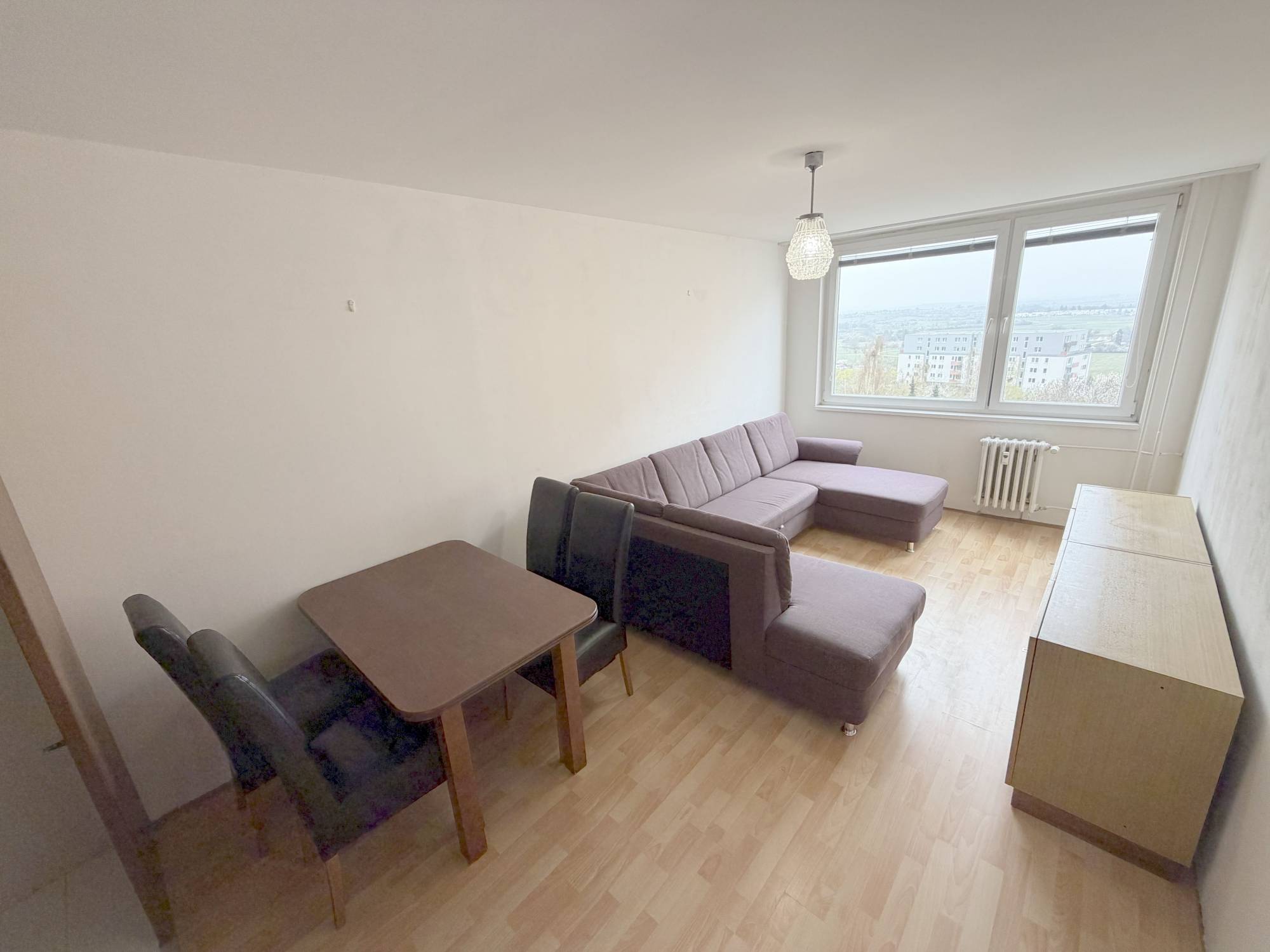 Byt má zděné jádro, plastová okna a instalované měřiče tepla a vodoměry.