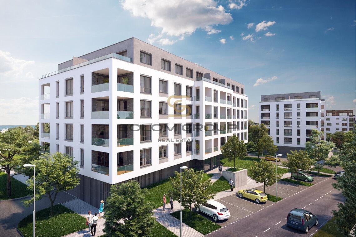 Prodej bytu 2+kk, 46,9 m² + balkón 9 m², který se nachází v 6.NP (poslední patro) cihlové novostavby v rezidenci Kaskády Barrandov, Praha 5 – Hlubočepy (Dům J). Výhled JZ. V bytě praktická komora na ukládání věcí.