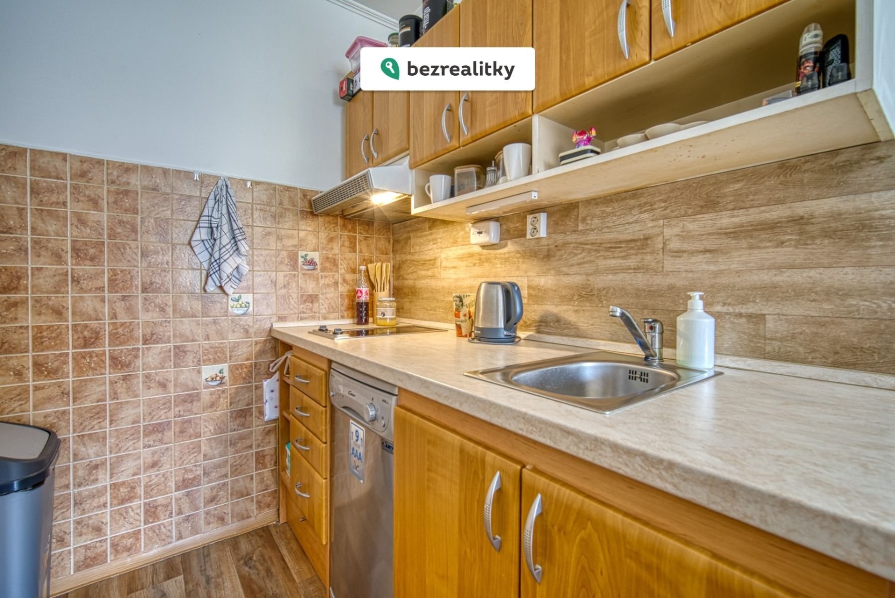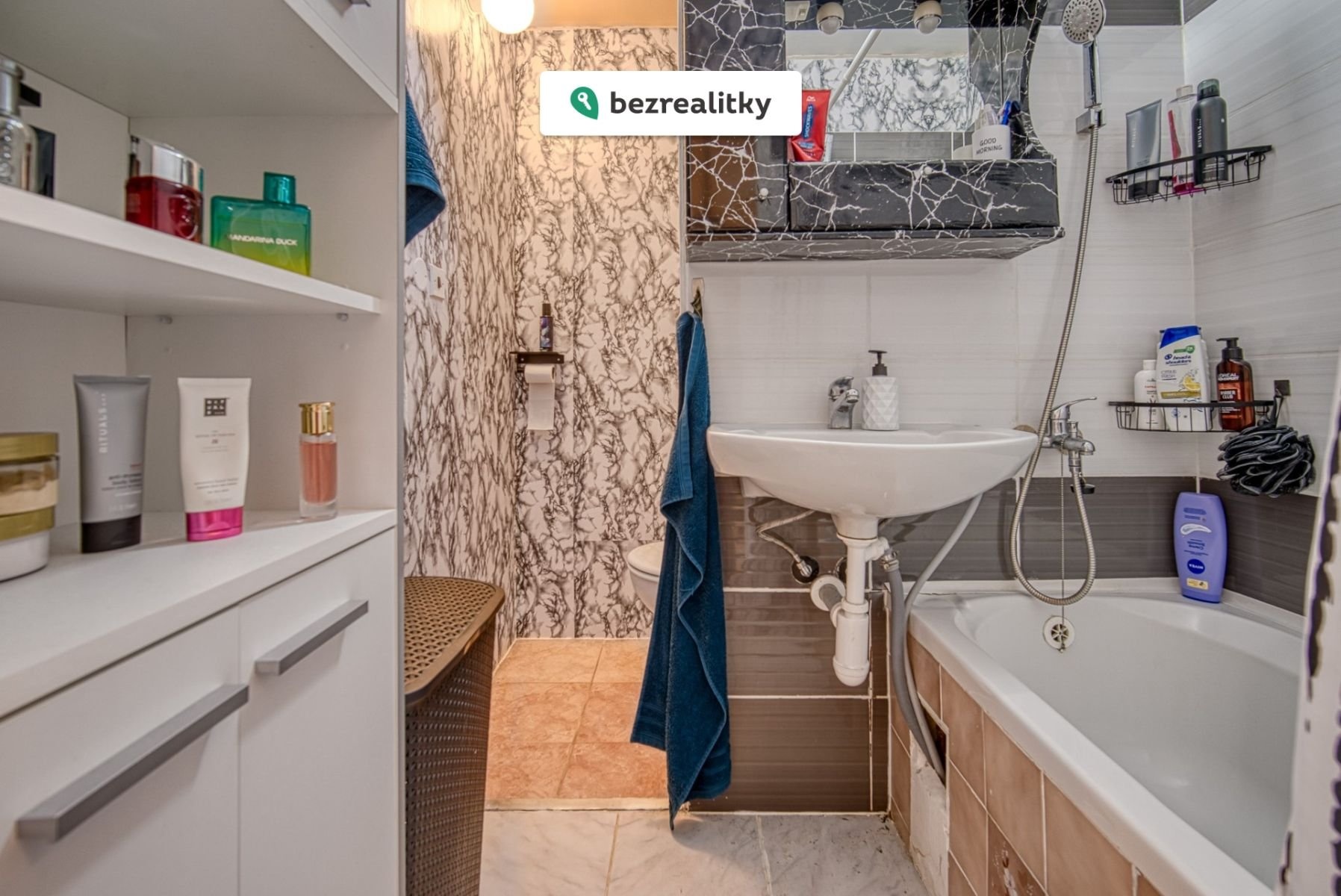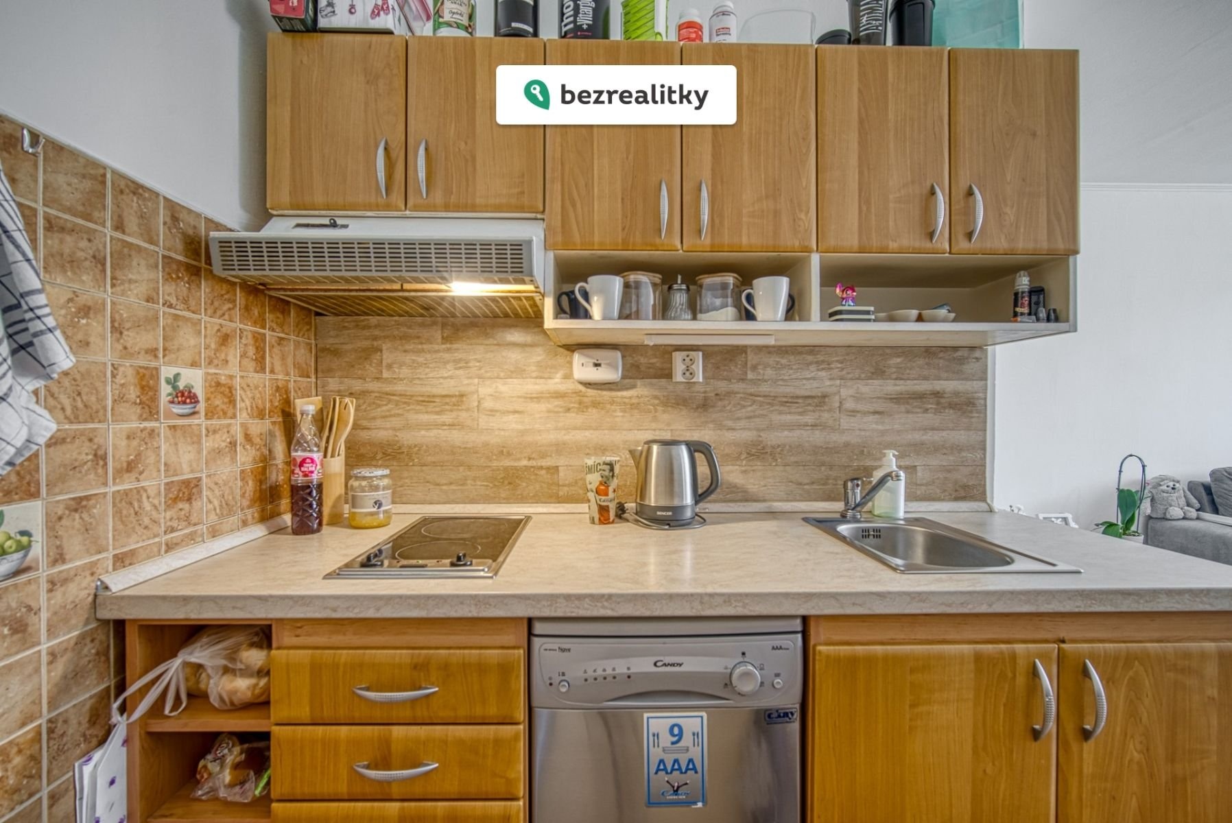 Byt je vybaven kuchyňskou linkou se spotřebiči, v koupelně je vana.