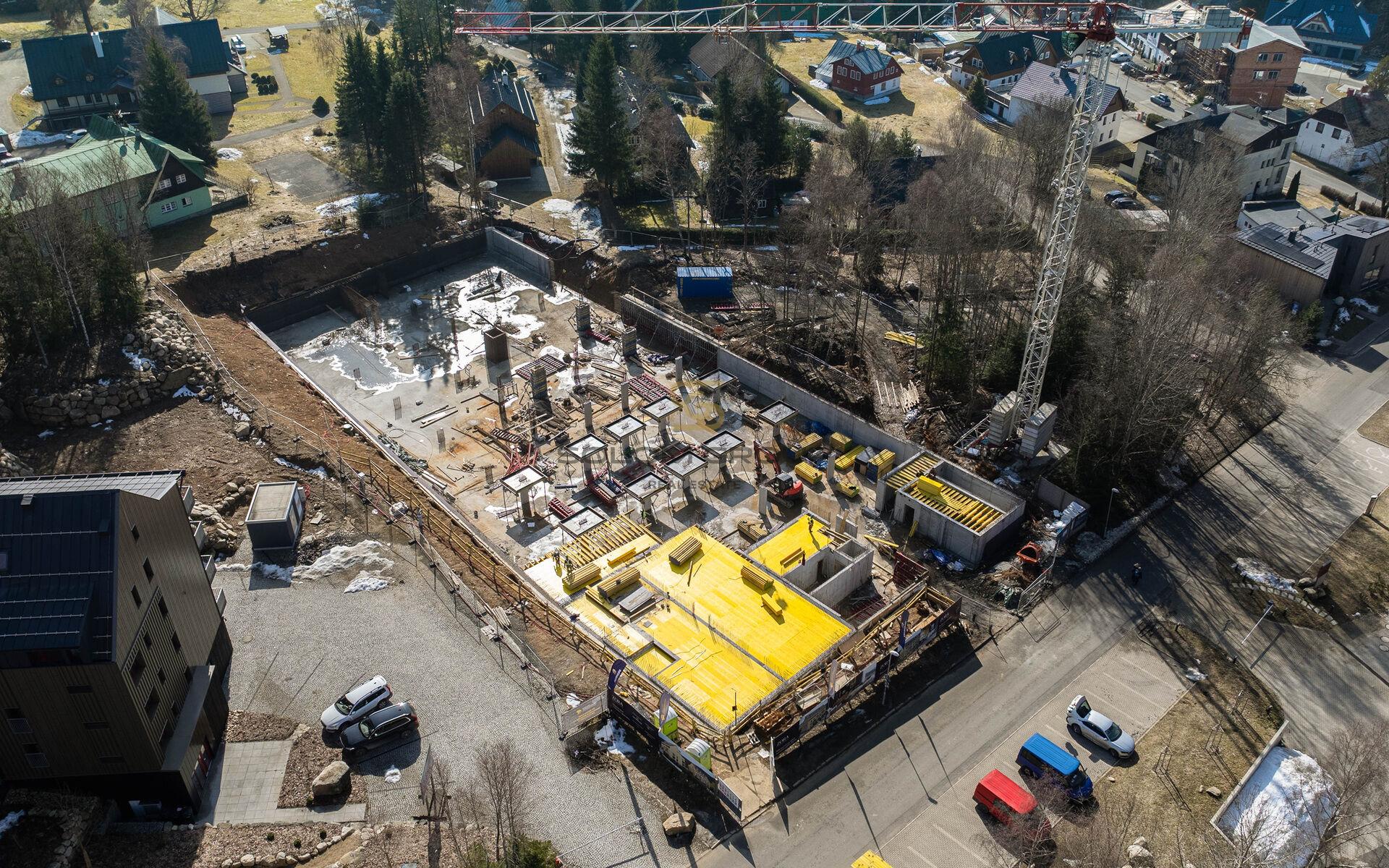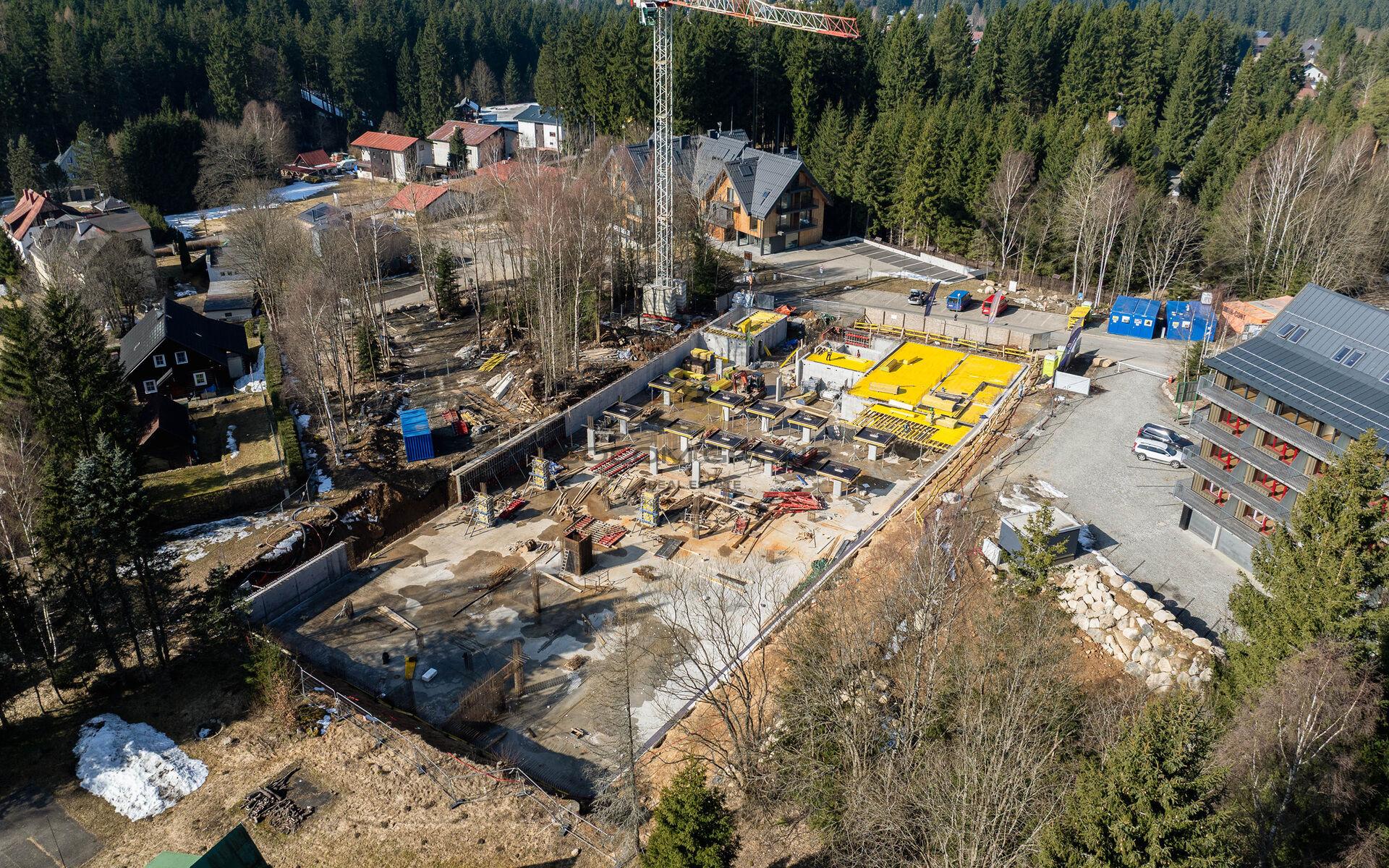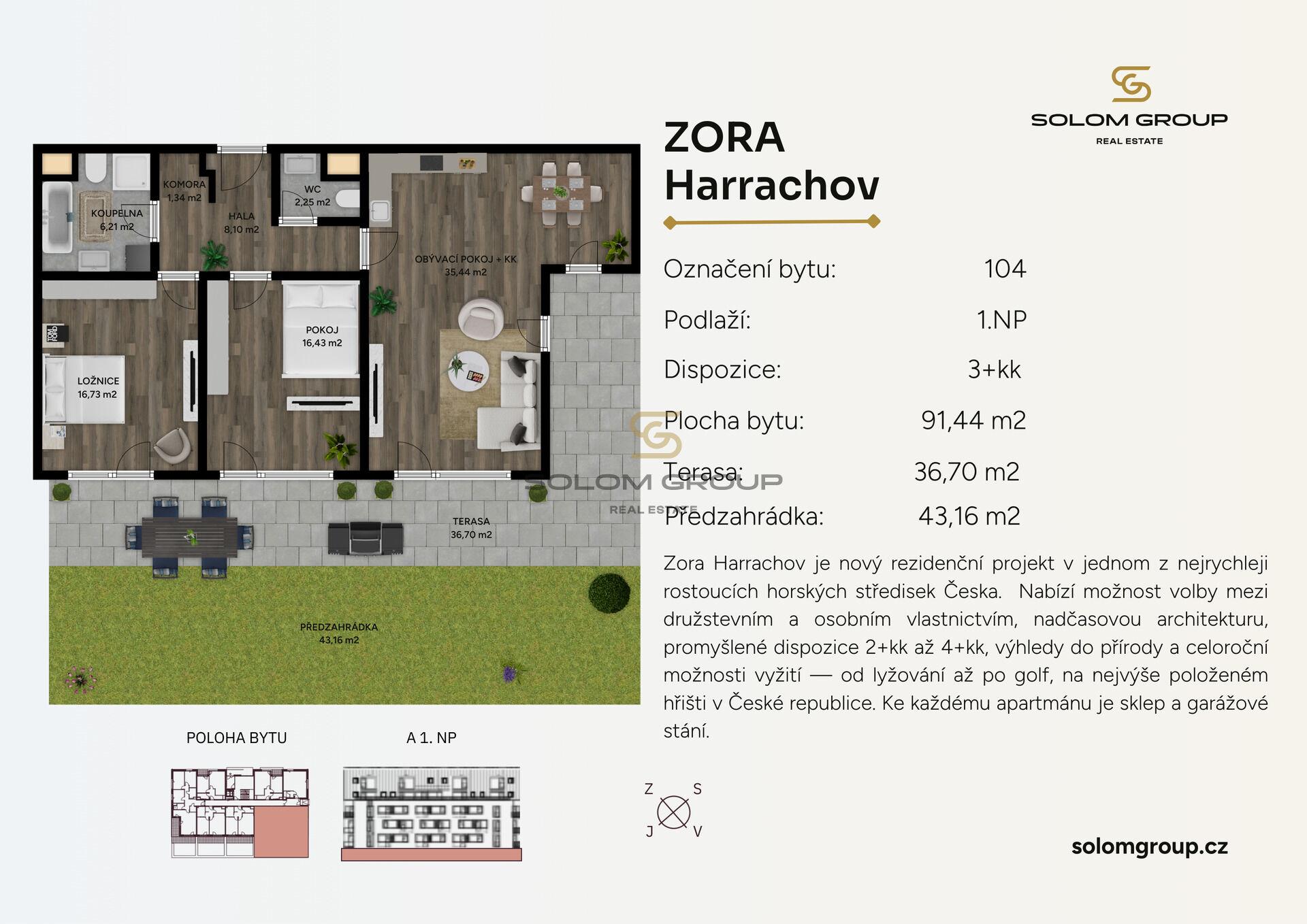 Prodej nového apartmánu 3+kk/, 171,3 m² (byt o výměře 91,44 m² + terasa o výměře 36,70 m² + předzahrádka o výměře 43,16 m²), který se nachází v 1. NP cihlové novostavby v rezidenci ZORA Harrachov, Krkonoše (Dům A)