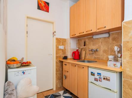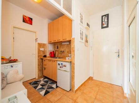Byt - 37 m2 OP + 7 m2 terasa s příznivou orientací - J / Z, se nachází v 5. posledním patře cihlového domu v docházkové vzdálenosti - tři minuty, od stanice metra Vyšehrad.
