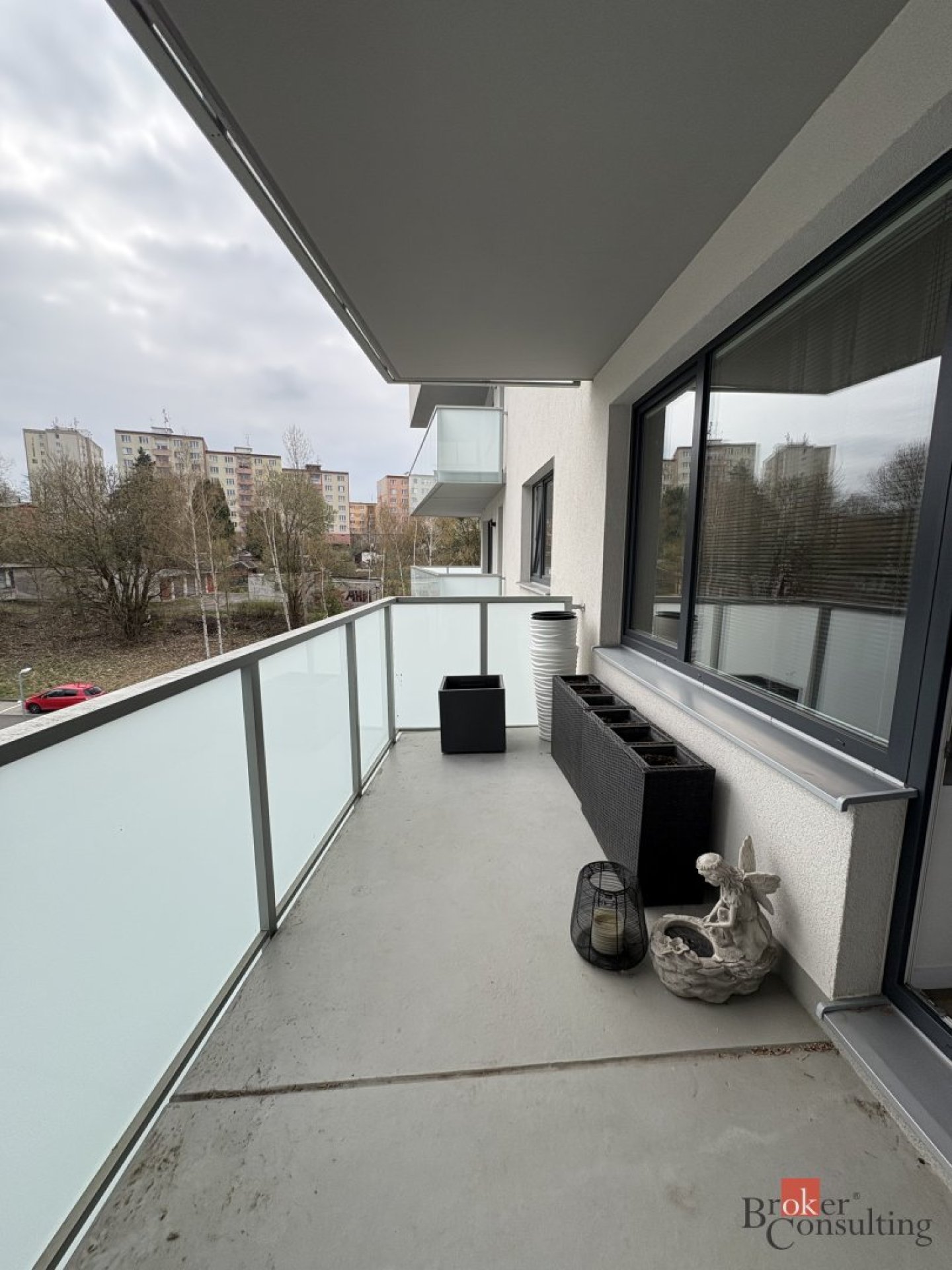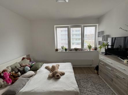 Byt nabízí prostornou obytnou část s kuchyňským koutem, ze které je přímý vstup na slunnou terasu o velikosti 18 m² – ideální místo pro ranní kávu i večerní relax. Díky západní orientaci je byt krásně prosvětlený po celý den.