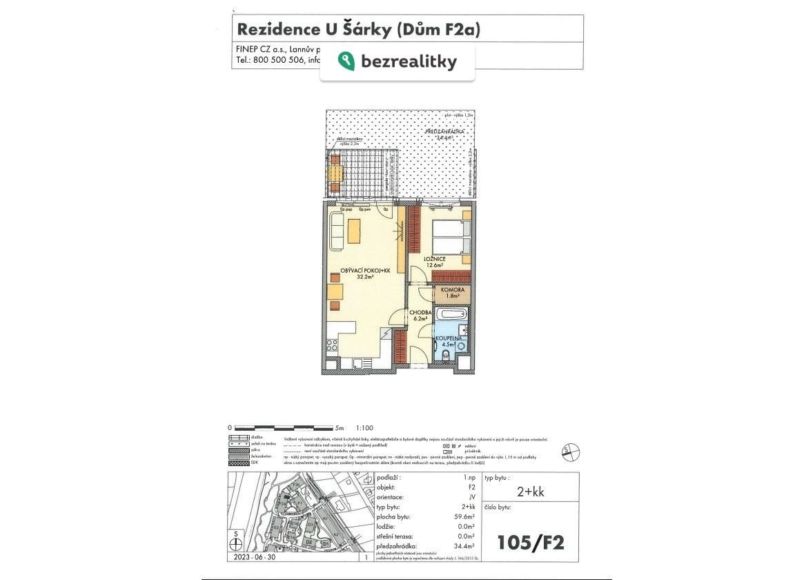 Jedná se o ojedinělou nabídku v rámci celého projektu. Byt disponuje větší podlahovou plochou 59,6 m², zatímco většina ostatních bytů 2+kk v projektu byla menší. Zásadní výhodou je také soukromá předzahrádka o výměře 34,4 m², přičemž bytů s touto kombinací bylo v projektu nabízeno pouze velmi malé množství. Právě proto jde o nadstandardní a hůře dostupnou variantu, která se v rámci projektu objevovala jen výjimečně.