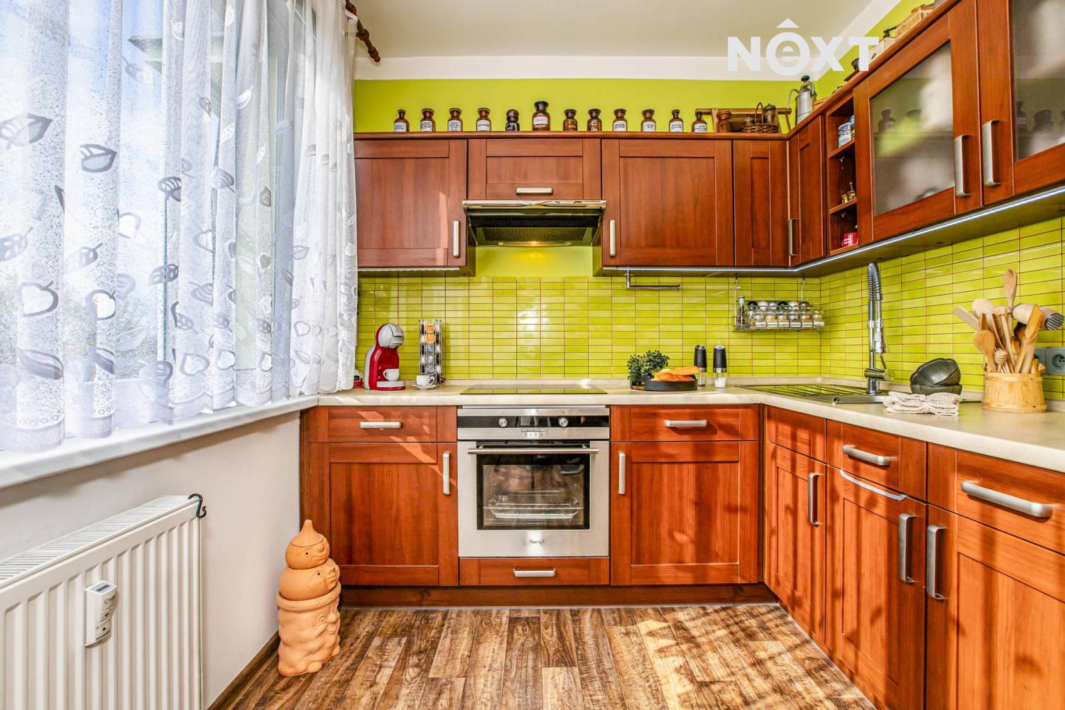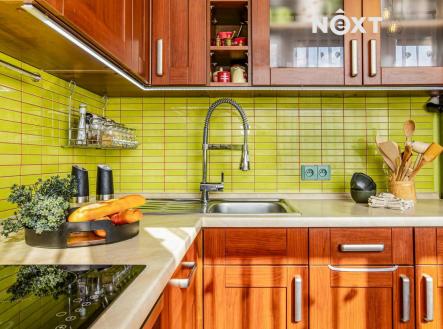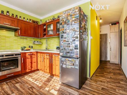 Pokračujeme do kuchyně o velikosti 8,1 m². Samostatná místnost s oknem, která nabízí dostatek prostoru nejen pro vaření, ale i pro menší jídelní kout. Kuchyňská linka je ve velmi dobrém stavu a celkově působí útulně a funkčně.