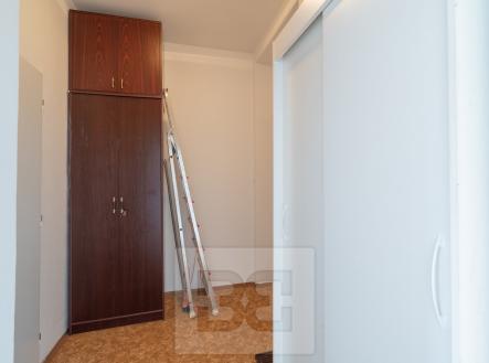 Byt se nabízí jako nevybavený, jeho součástí je však kuchyňský kout se spotřebiči a skříň v předsíni. Na podlahách je položeno lino. Okna jsou plastová.
