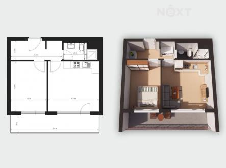 Celková podlahová plocha činí 52 m², součástí je prostorná lodžie o velikosti 9,6 m² s příjemným výhledem a kóje na patře poskytující praktický úložný prostor. V ceně nemovitosti je také garážové stání přímo v domě v hodnotě 400.000,- – velká výhoda pro pohodlné parkování i bezpečnost.